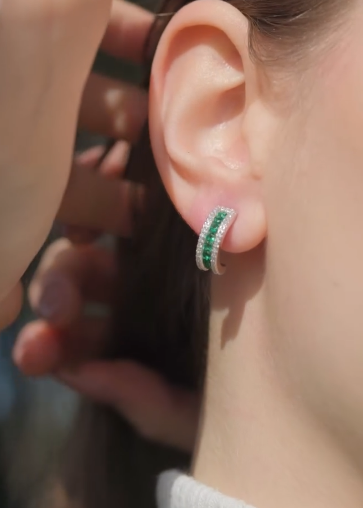 Orecchini a Fascia Verde Argento